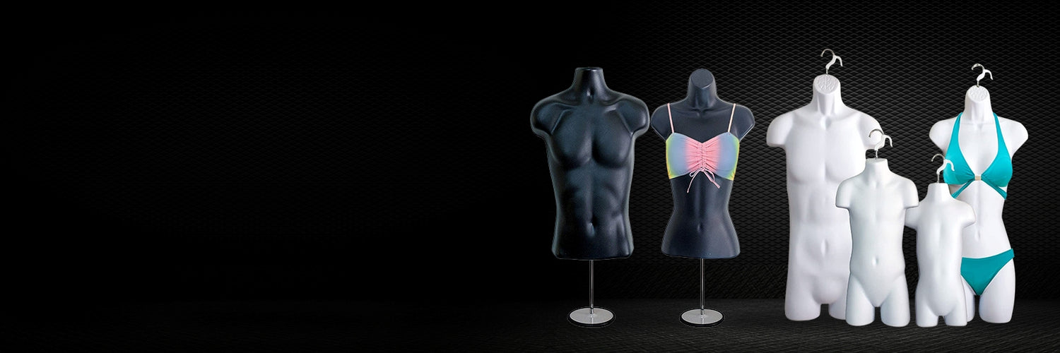Black Female Mannequin Hip Long Hollow Back Body Torso Dress Form & Hanging Hook, S-M Sizes