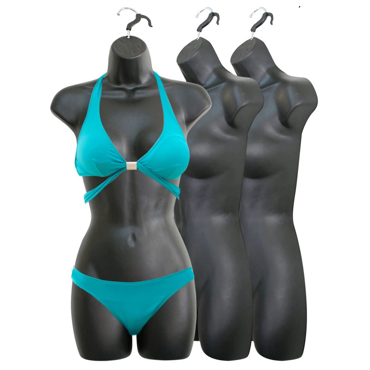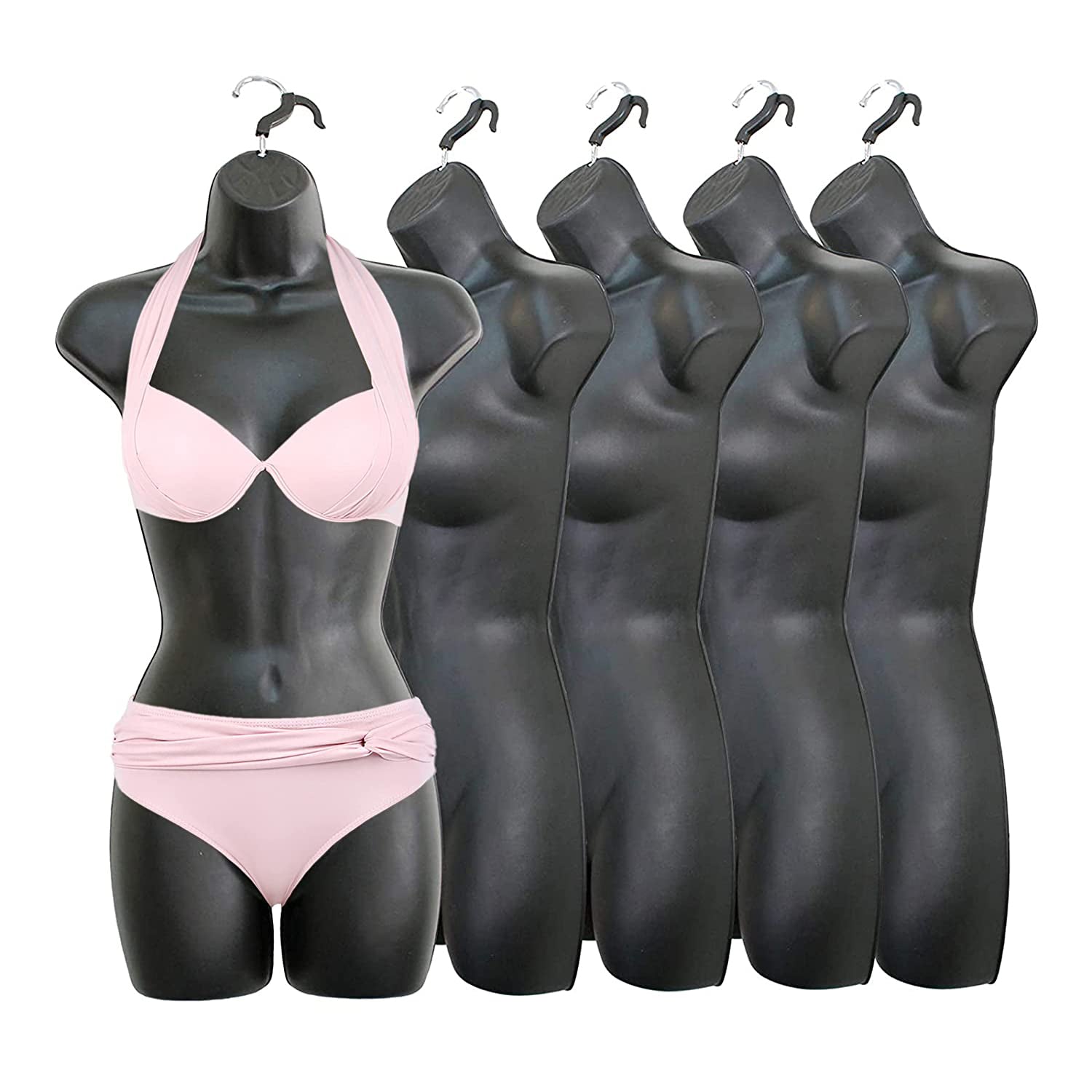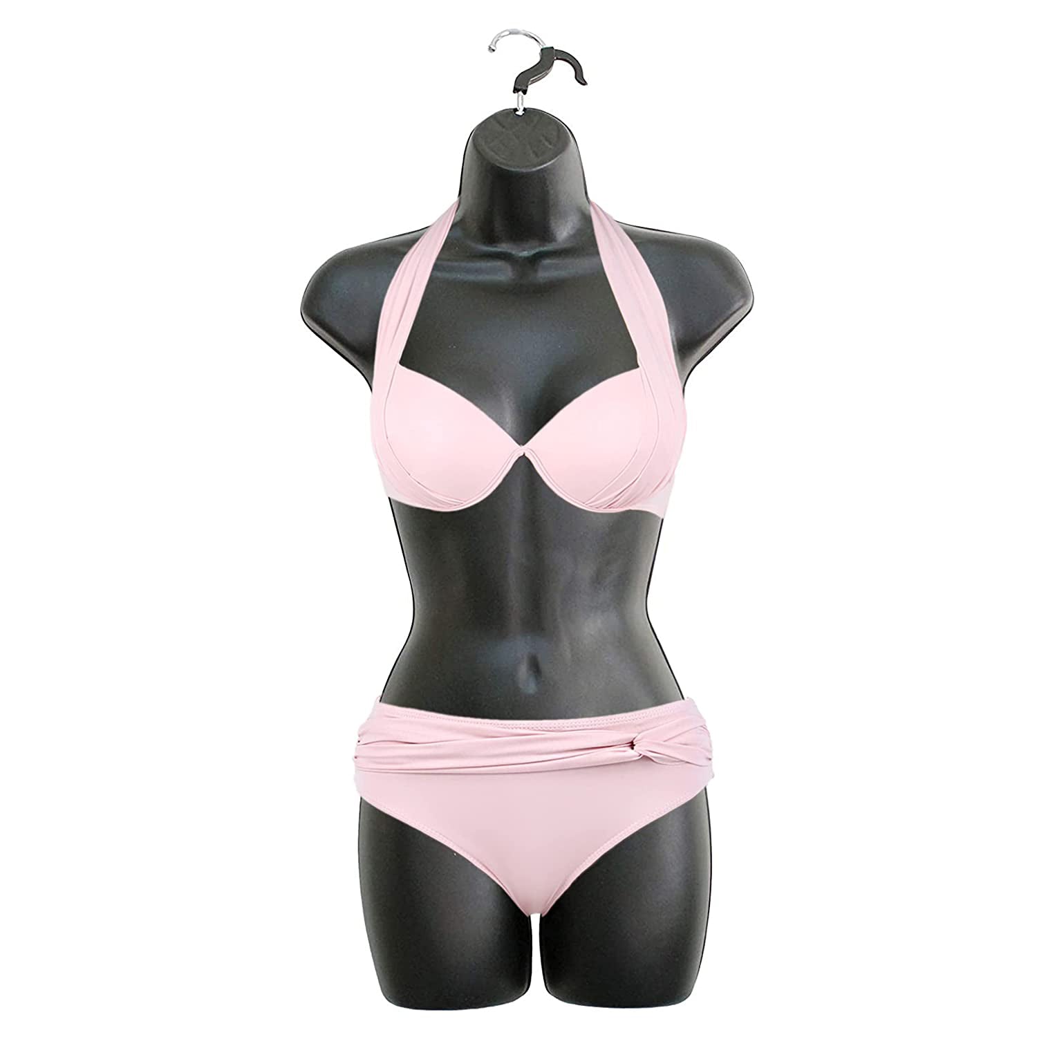Black Female Mannequin Hip Long Hollow Back Body Torso Dress Form & Hanging Hook, S-M Sizes