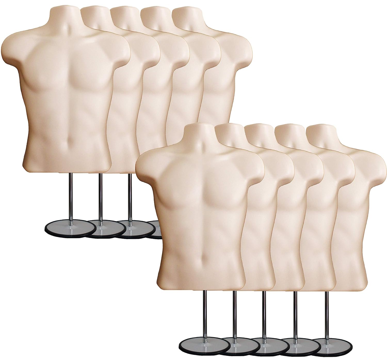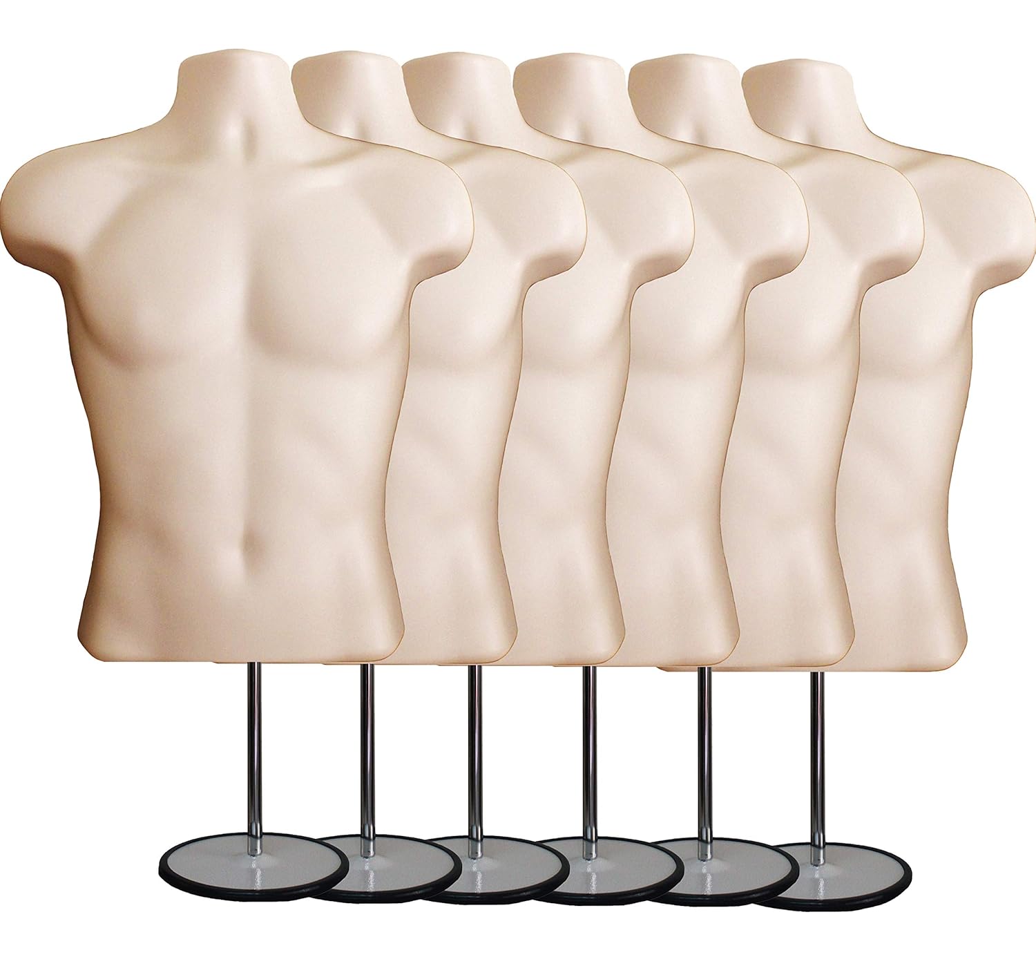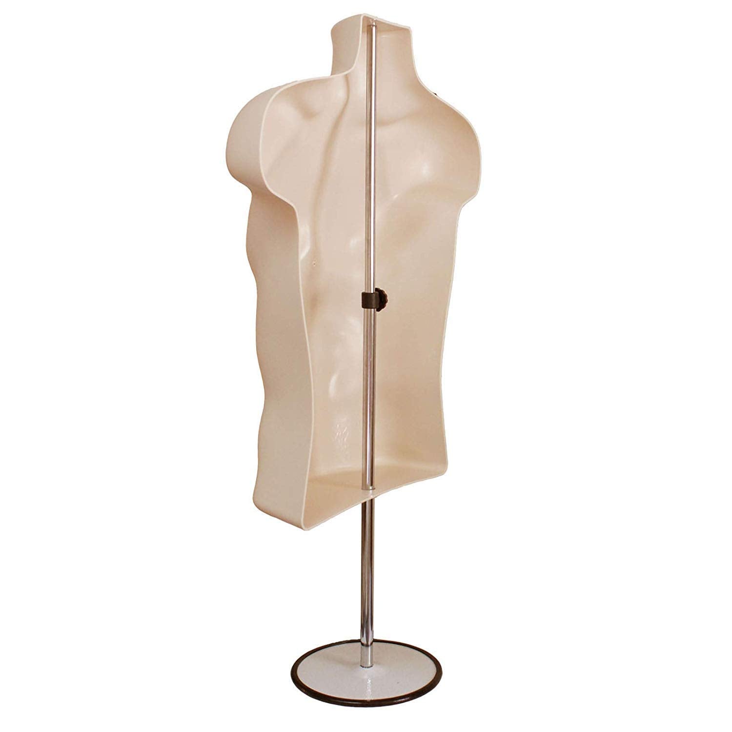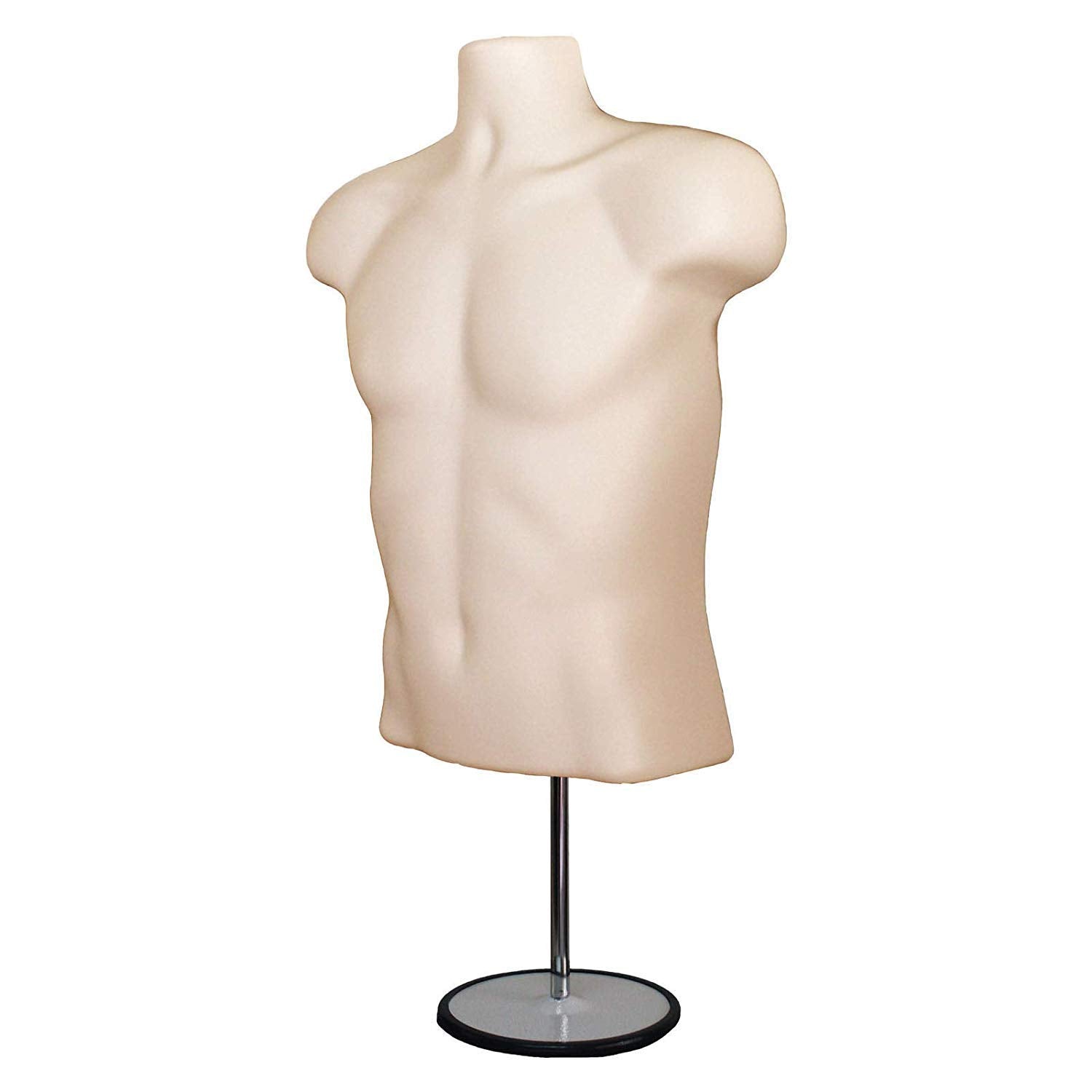 Male Mannequin Torso with Stand Dress Form Tshirt Display Countertop Hollow Back Body S-M Clothing Sizes Flesh
