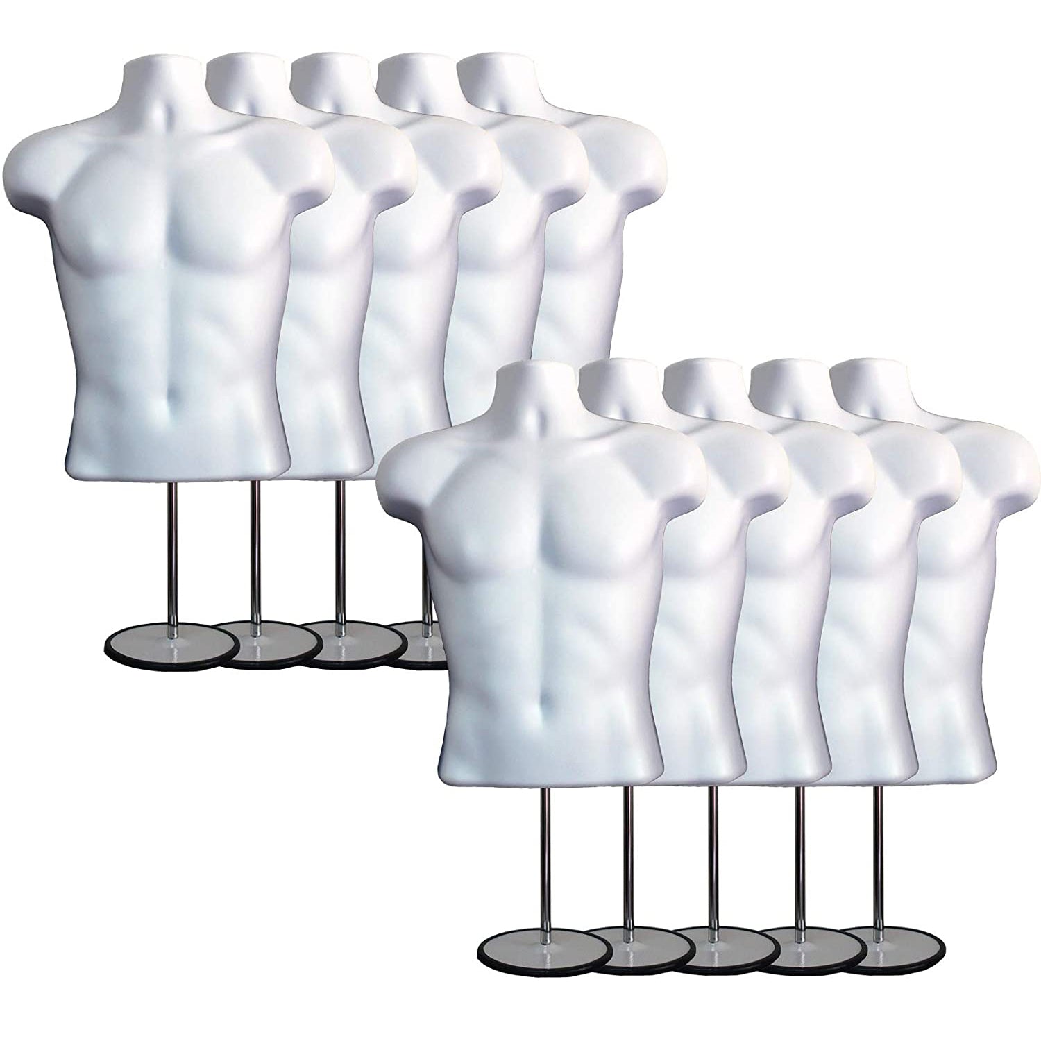 10 QTY – WHITE MALE HOLLOW BACK MANNEQUIN TORSO FORM - OPEN BACK